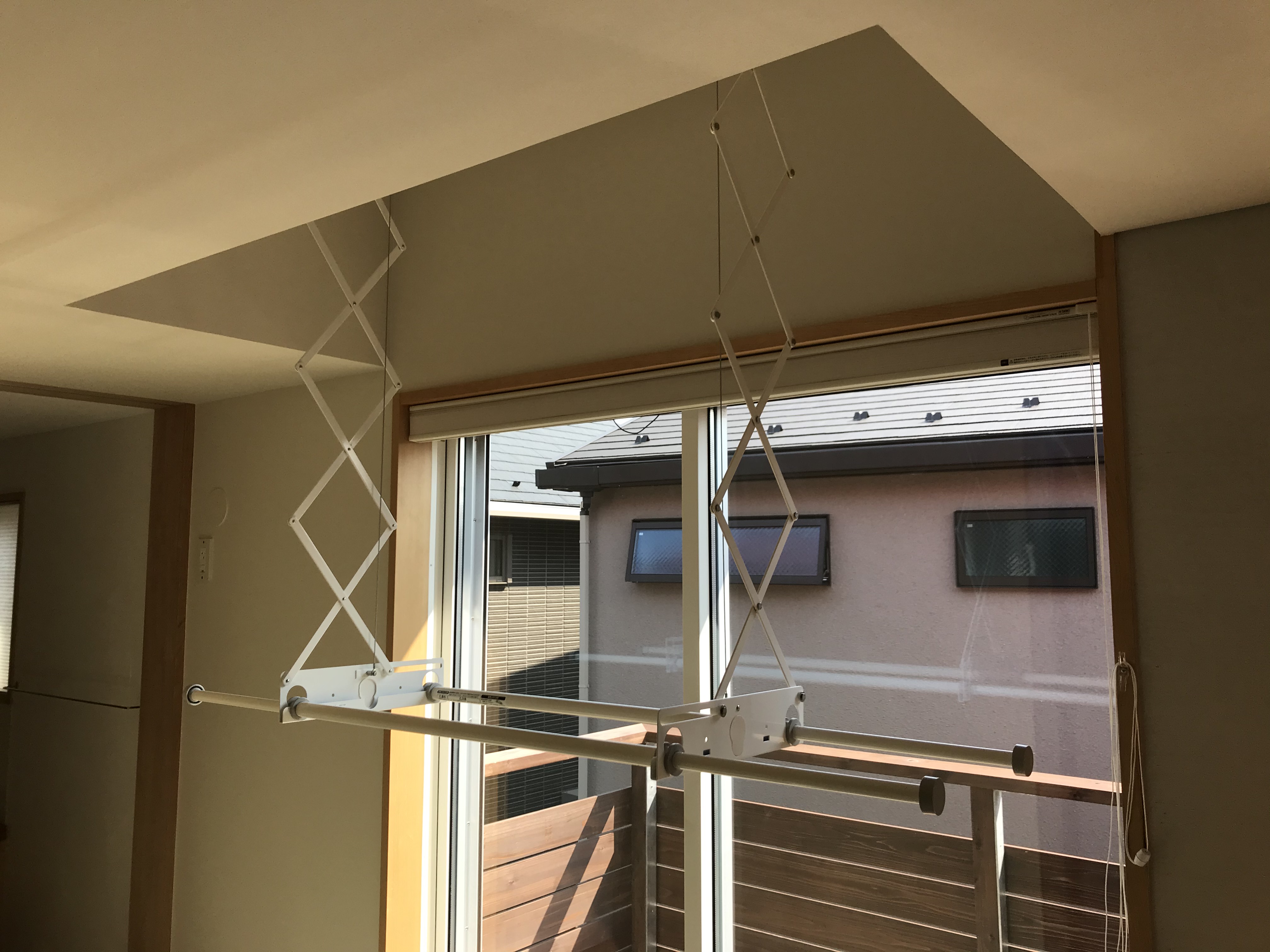 天井に収納されますので、見た目も気になりませんし何より実用的で使い勝手が良いと思いました。
