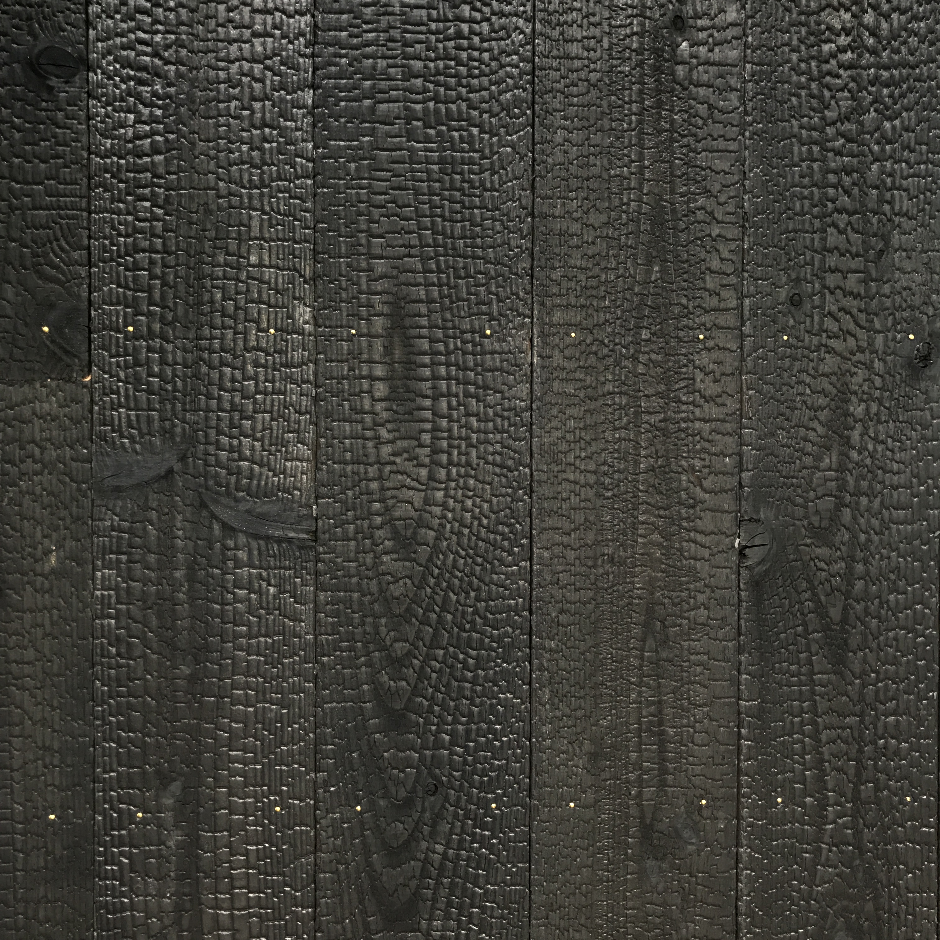 共栄木材さんではいろいろな焼き杉を取り扱っています。焼いてそのままのものや表面のモコモコを落とした平滑でソリッドなもの、さらに磨きをかけて木地が表れた木質感のあるものなど。