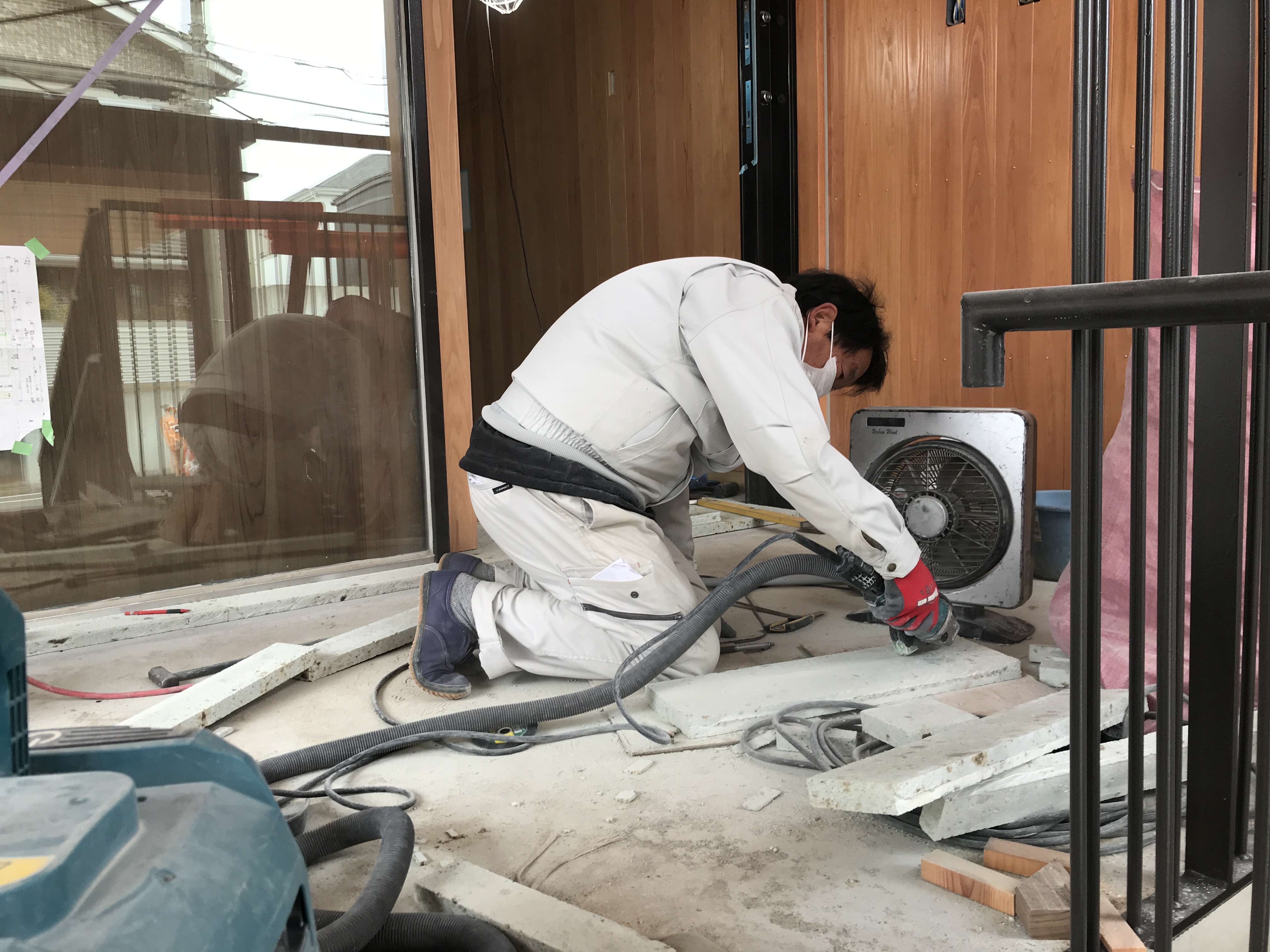様々な職人さんが一つの現場で作業を進めております。