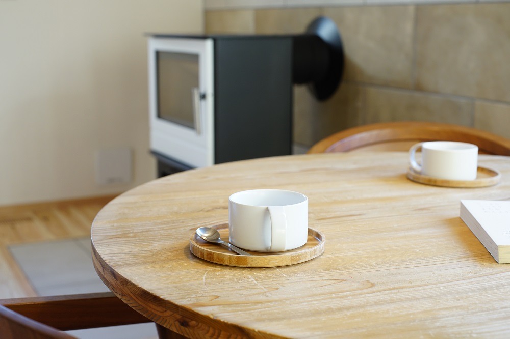 リビングの薪ストーブは、暖をとるだけではなく料理もできます。